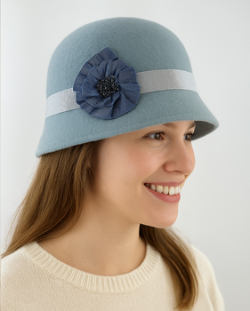 Chapeau cloche en feutre gris clair,