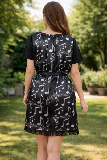 Affirmez votre style avec cette robe originale au motif de notes de musique