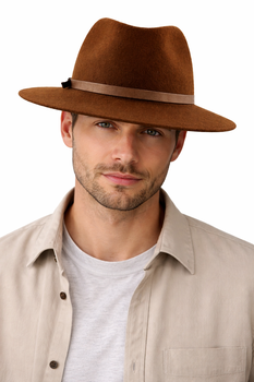 Chapeau type Borsalino en feutre brun écureuil