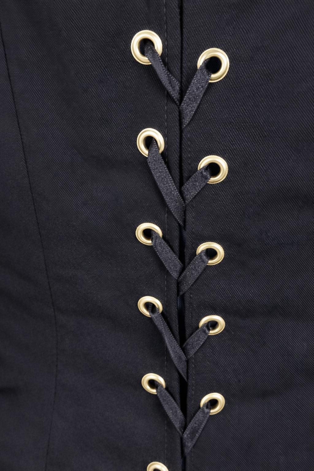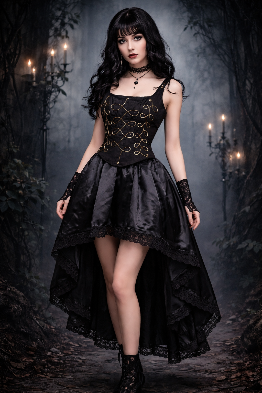 Jupe courte devant et longue derrière ornée de dentelle noire