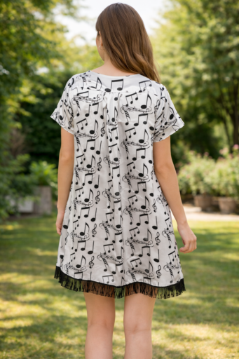 Affirmez votre style avec cette robe originale au motif de notes de musique